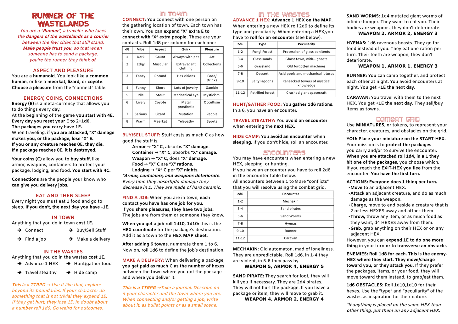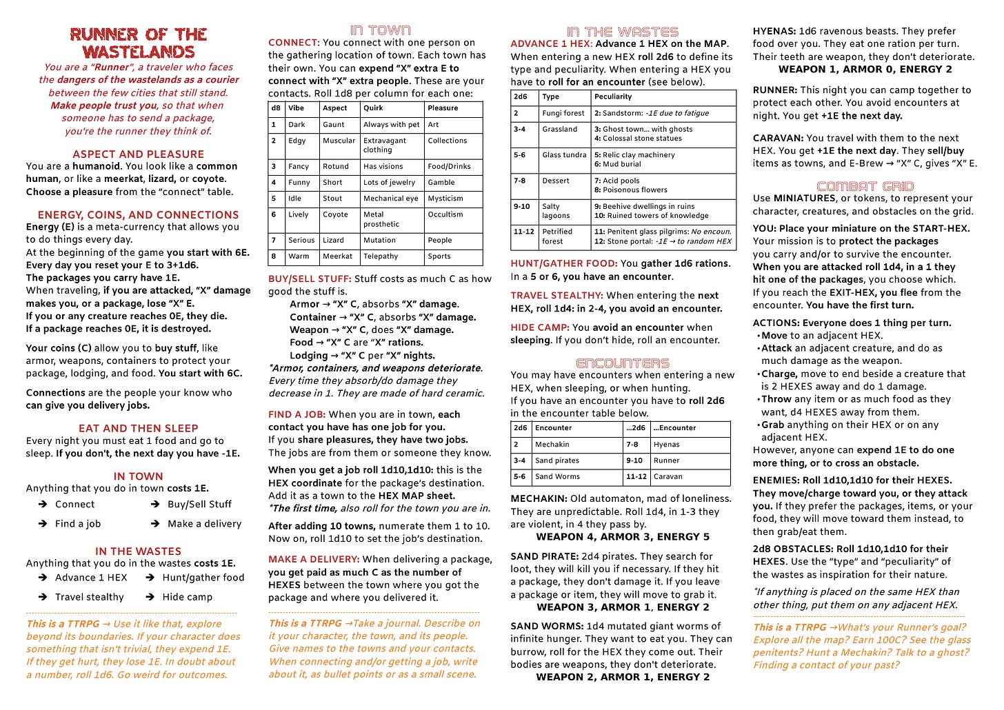 RUNNER OF THE WASTELANDS, after ~ 10 testing runs