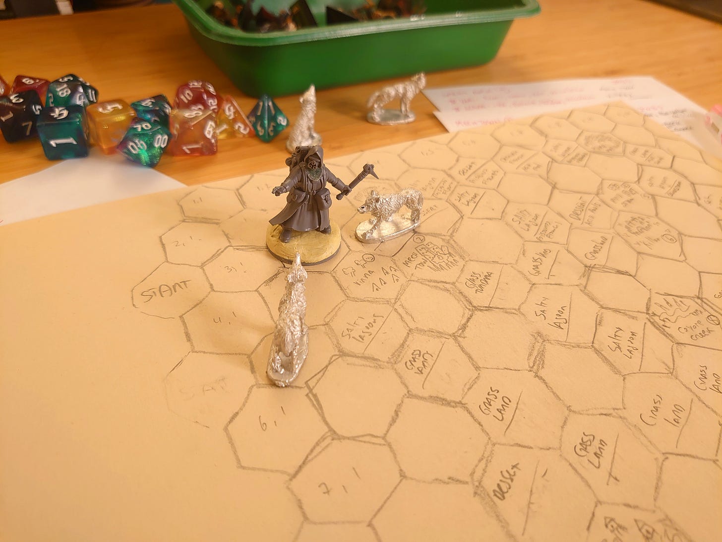 *The HEX is: 2d6 = 1+4 = 5 -> Grassland