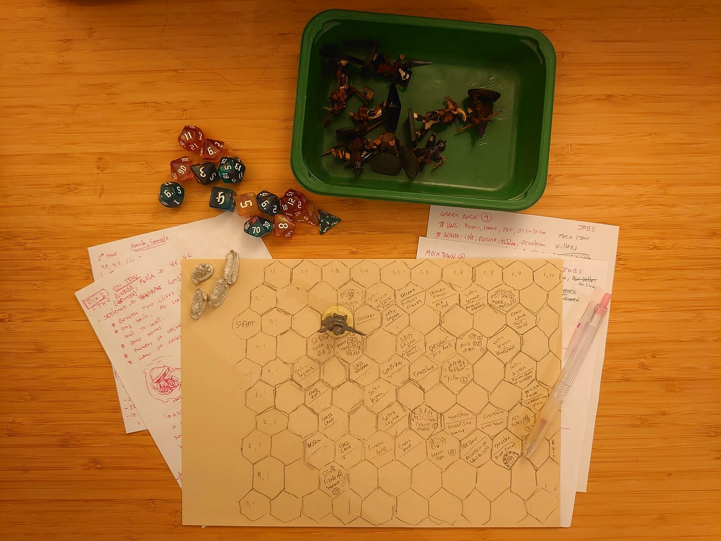 *Then for the number of obstacles: 1d6 = 2, and for each 1d10,1d10 to set their HEXES.